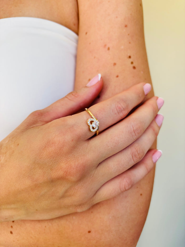 Este delicado anel apresenta um elegante design de coração vazado, com um sutil detalhe cravejado em seu interior. Uma peça charmosa e discreta para expressar o amor com leveza e elegância no seu dia a dia.
