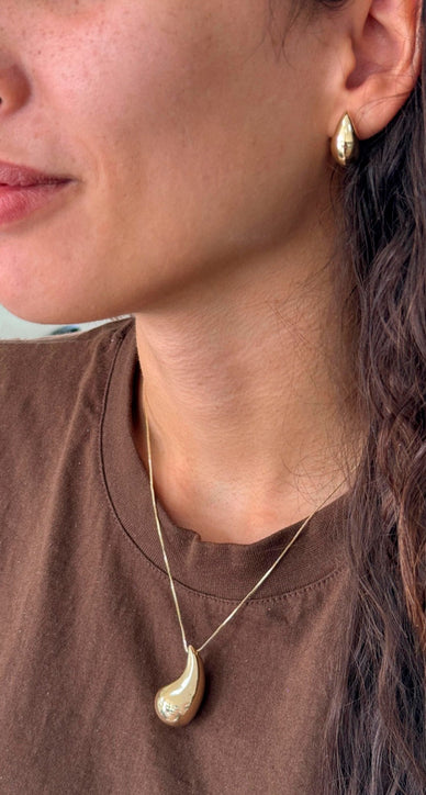 Adicione um toque de sofisticação minimalista ao seu visual com este elegante conjunto de colar e brincos. As delicadas formas orgânicas em dourado capturam a luz de maneira sutil, proporcionando um brilho discreto e elegante. Perfeito para o dia a dia ou para complementar um look mais elaborado, este conjunto é a definição de elegância sem esforço.