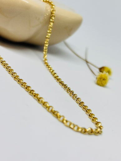 Uma corrente delicada e versátil, perfeita para compor looks elegantes e minimalistas. Pode ser usada sozinha ou combinada com pingentes.